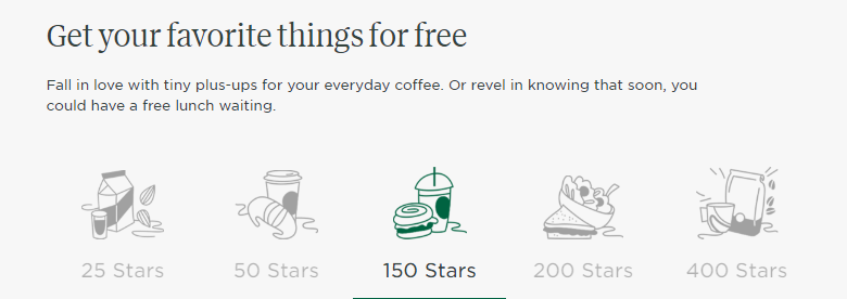 For example, Starbucks Rewards incentivizes loyalty by rewarding customers with free drinks and food (flagship items), not with t-shirts and hats (which would be a nice gesture, but not what customers come to Starbucks for).
