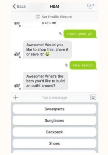 H&M is a good example of how to use chatbot automation to effectively guide users through the online store areas in alignment with their purchase desires. The bot is conversational and is developed to help mobile customers navigate their search through outfit possibilities easily. This is how they get customized results quickly.