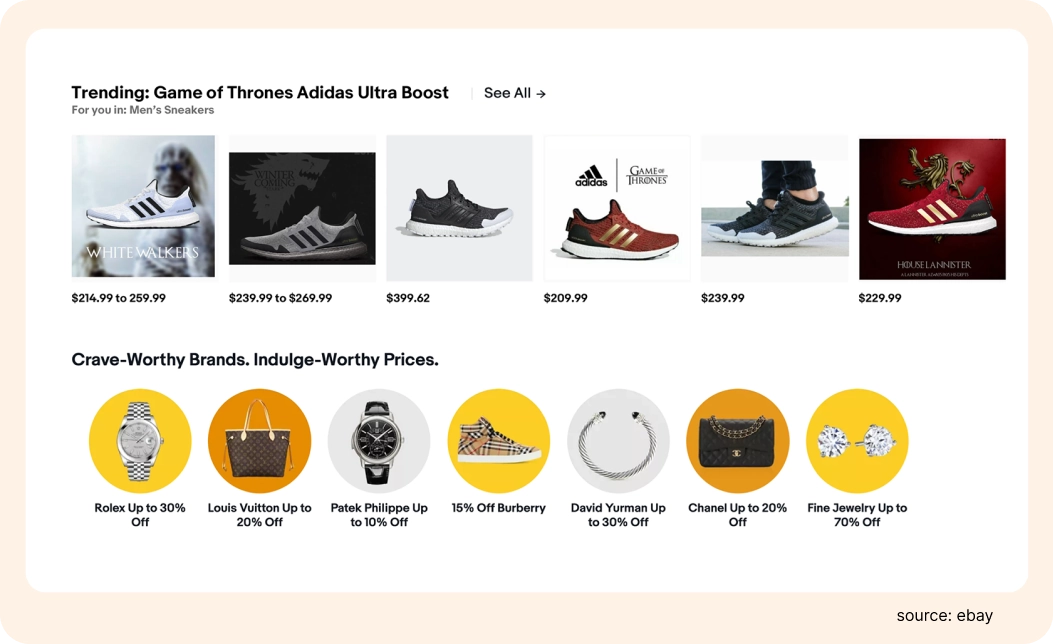 One of the notable examples of using AI in eCommerce is eBay ShopBot. Operating through Messenger, this bot delivers personalized assistance and an exceptional experience by helping customers with shopping, providing instant responses to their queries, and performing a variety of other tasks.