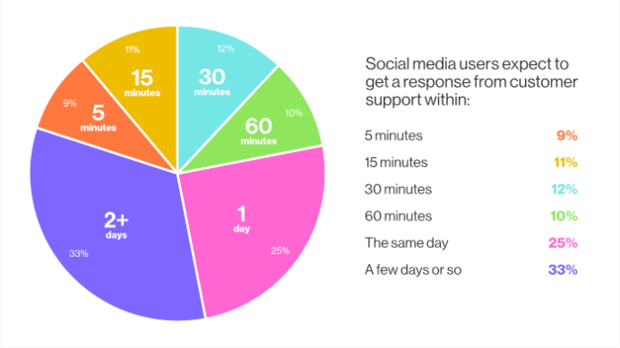 - Reply promptly on social media: Customers expect always-on support on social media channels like Facebook, Twitter, Linkedin. 42% of consumers expect a response on social media within 60 minutes. Your online customer support strategy should include quick replies to inquiries, reviews, and complaints.
