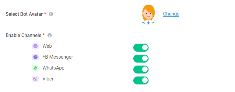 7. Once you set the bot avatar, you need to enable the channels that are relevant for your business. Enable Facebook Messenger here. That’s it!