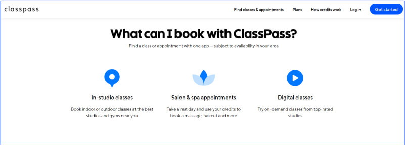 On their company homepage, ClassPass promptly presents the primary advantages of their business model: